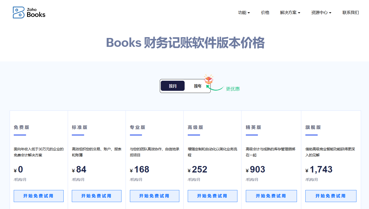 Zoho Books供给了跨越50多种营业报表模板,涵盖从发卖、收入和采购到库存、项目、账户和税费的所有营业运营的一系列演讲。Zoho Books供给多种版本,从根本版到高级版,满脚分歧规模企业的预算和需求。用户能够按照本人的现金流环境选择按月或按年领取,很是适合预算无限或但愿矫捷调整订阅打算的企业。取国际大品牌产物比拟,性价比更高。